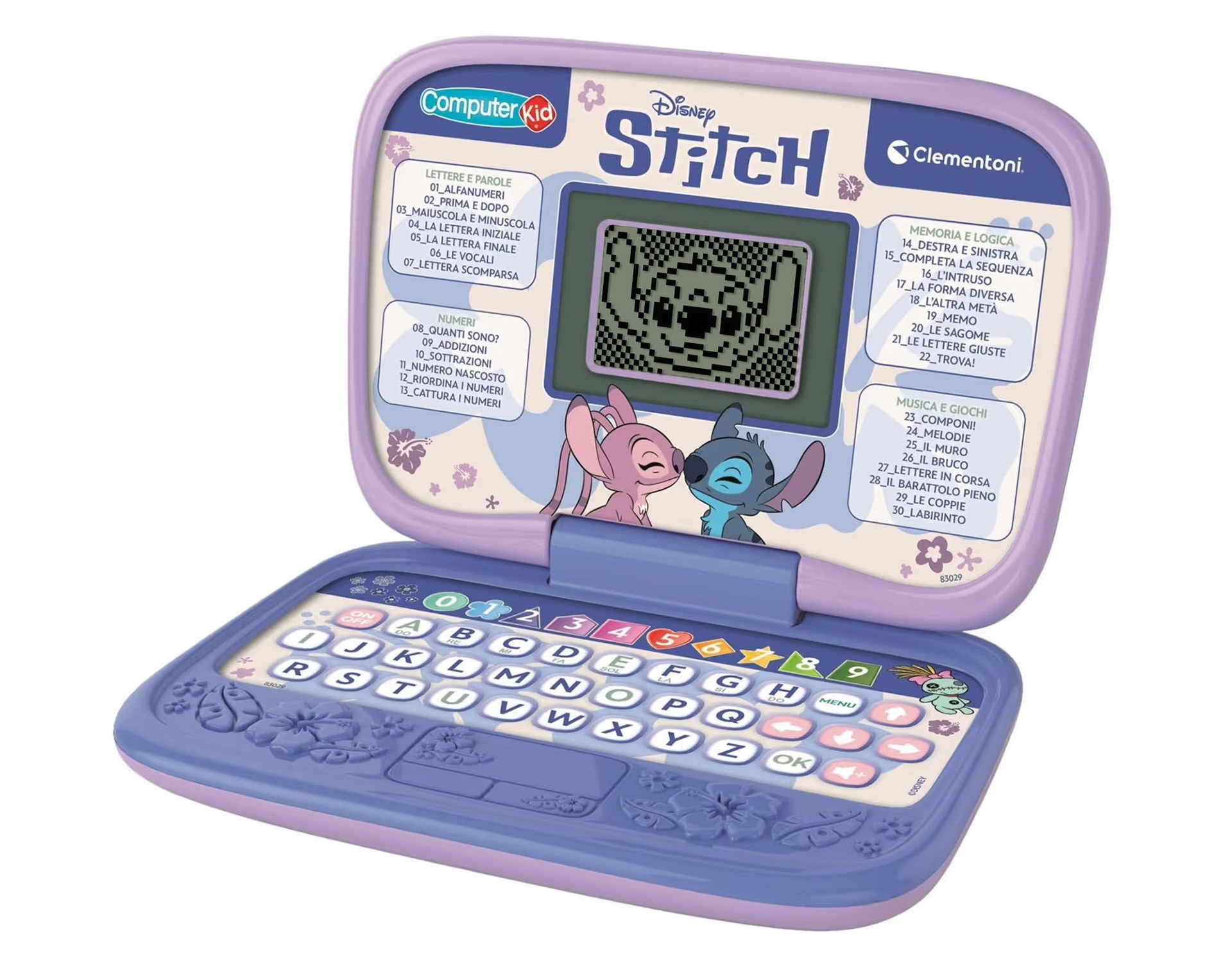 Per la licenza Disney di Clementoni ho lavorato all’adattamento del Baby Laptop con Stitch, creando opening e closing originali e personalizzando le sezioni di gioco con i personaggi più amati del film.