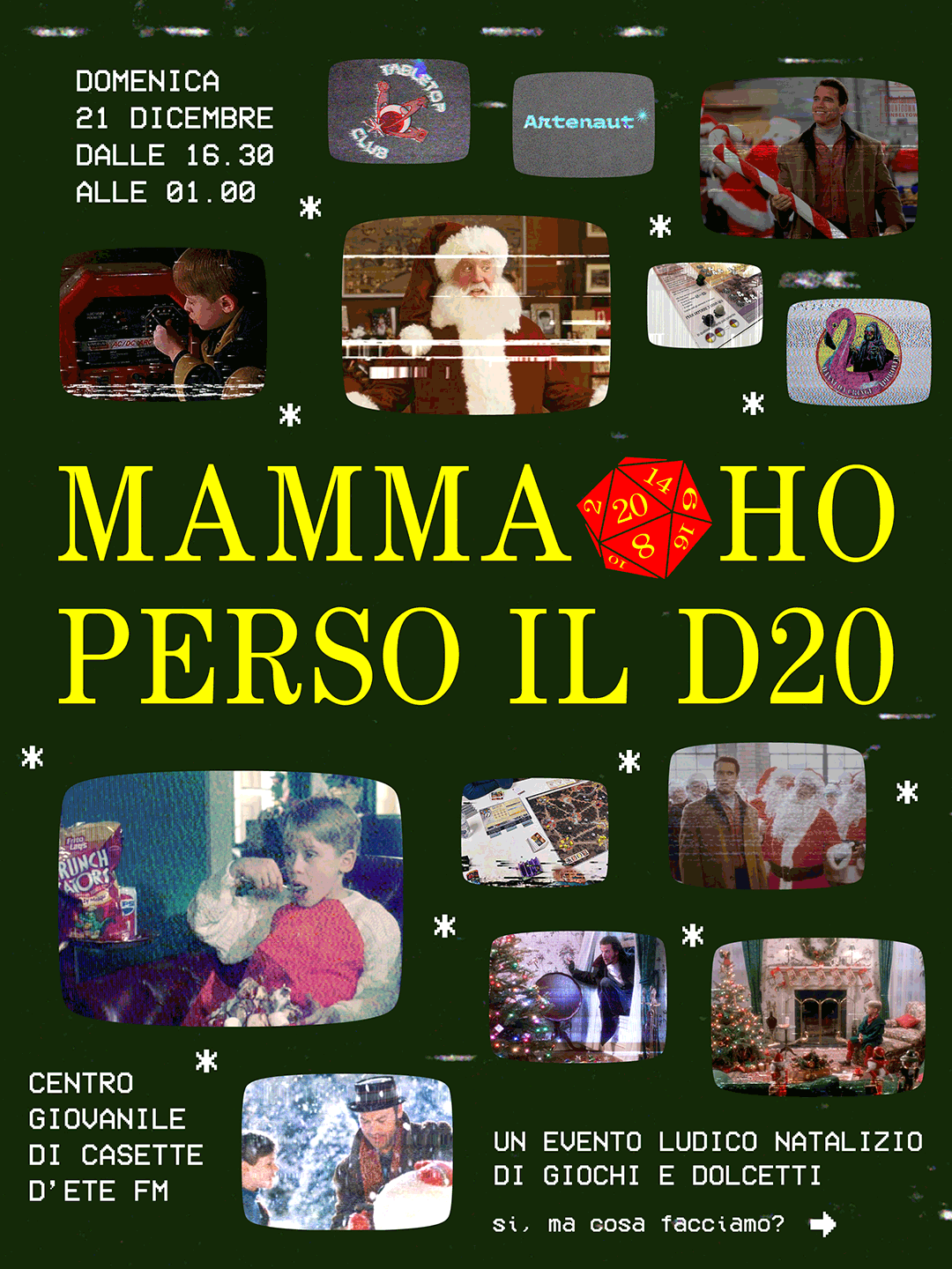 Regolarmente vengono organizzati eventi, che spaziano da attività a tema a Giochi di Ruolo. Per idearne la comunicazione ho attinto dalla cultura pop e nerd. Ho creato quindi la comunicazione social e eventuali cartelli e props.